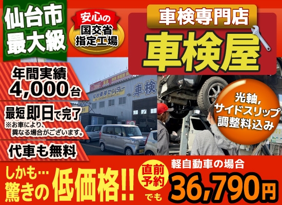 仙台市 多賀城市 塩竈市の格安車検3.6万!車検年4千台