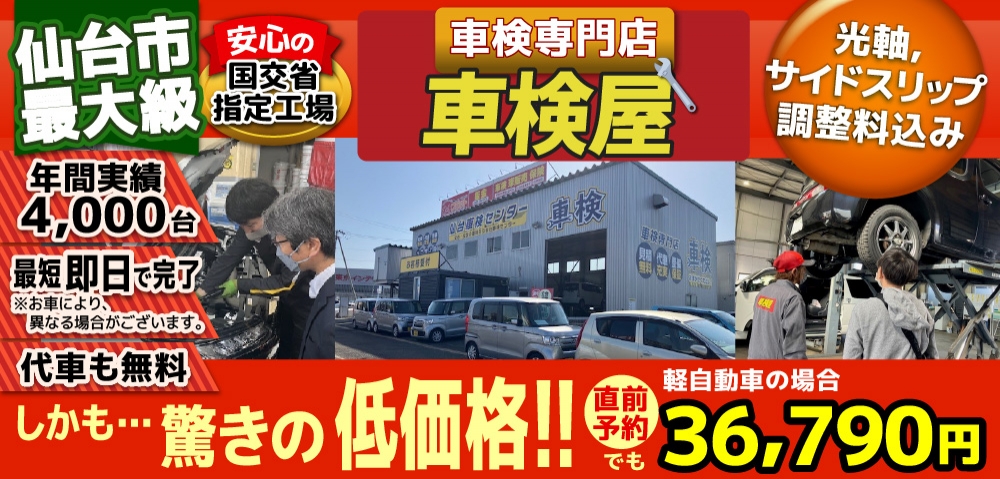 仙台市 多賀城市 塩竈市の格安車検3.6万!車検年4千台